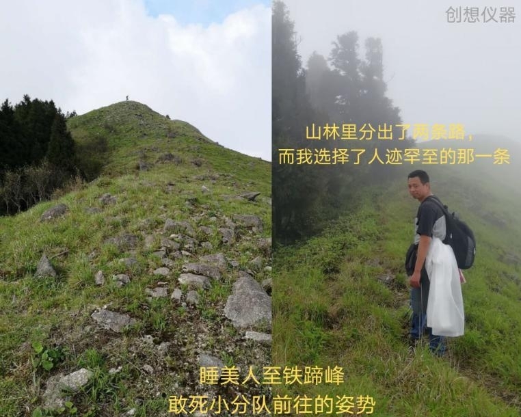 從睡美人前往鐵蹄峰原本有一條從半山腰的平緩道路,但是“不償命小分隊”中的“作死小分隊”為了挑(si)戰(zhàn) (de) 自 (geng) 我(kuai),決定從山脊前往鐵蹄峰。